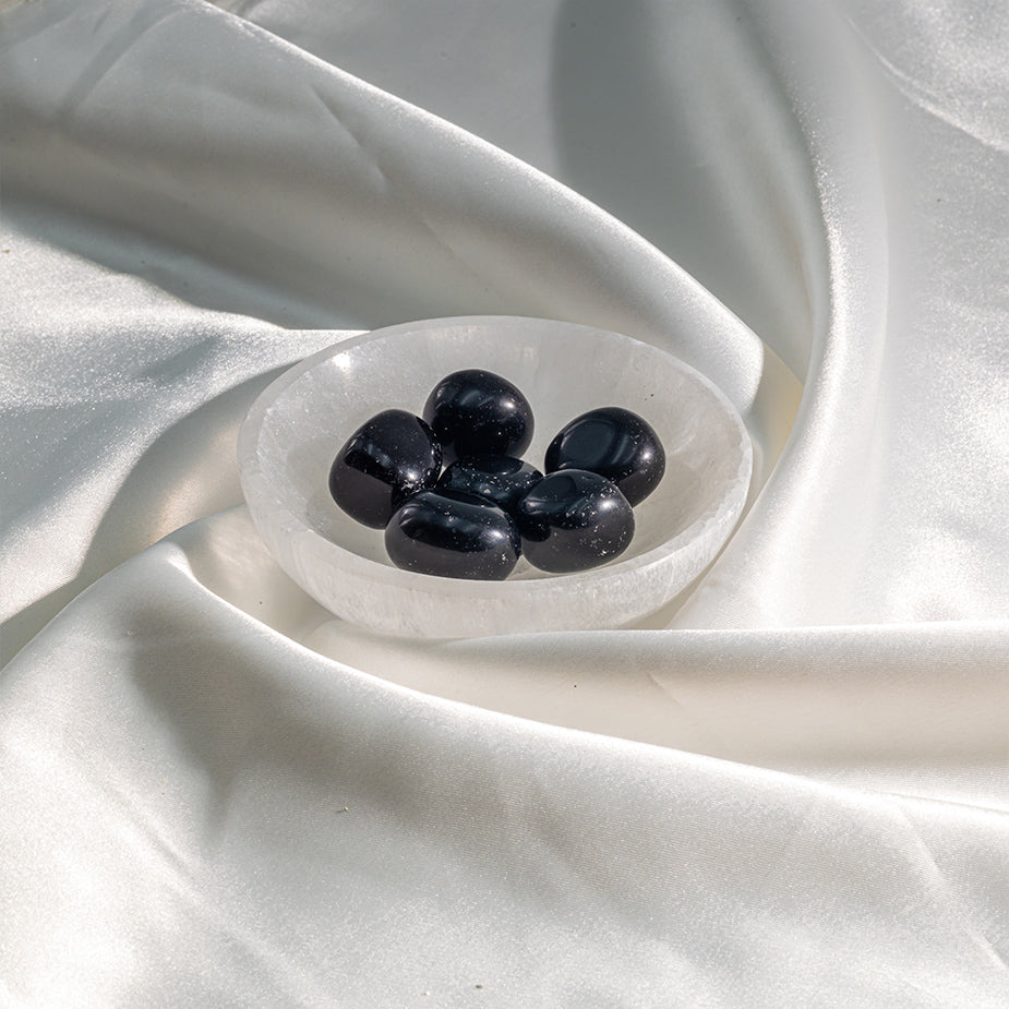 A hand-carved 8 cm selenite bowl - a luminous cradle for your crystals, amplifying their energy while cleansing them with moonlight purity.
