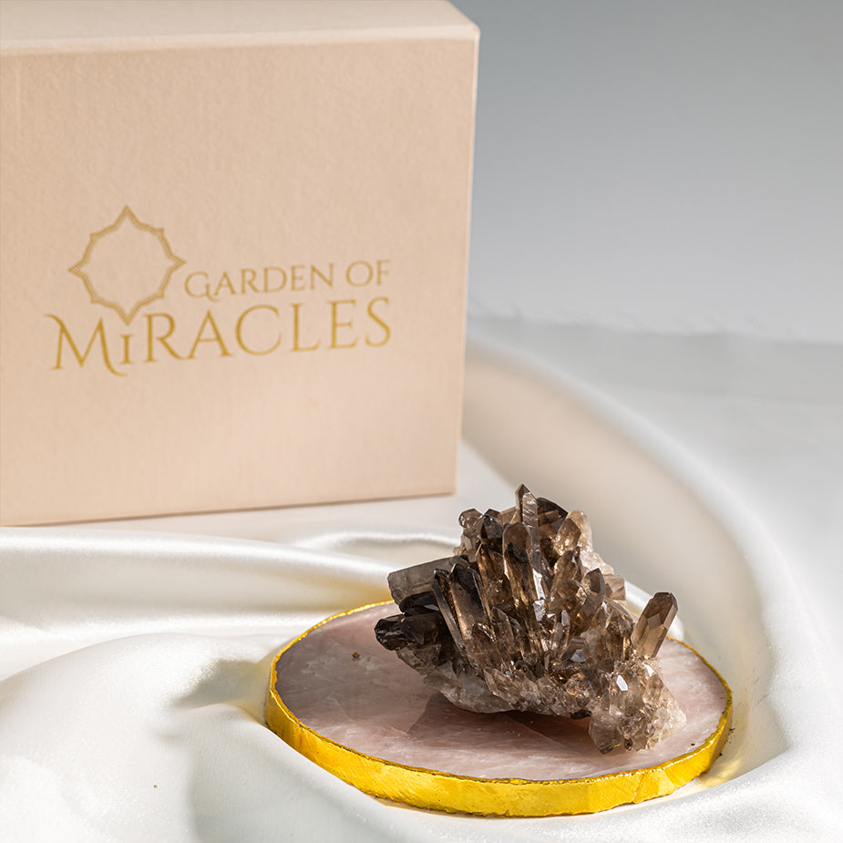 Our Smoky Quartz cluster activates the root chakra. It is known for transmutation, believed to convert negative energy into positive energy. It offers grounding and protection and promotes emotional healing, stability and a deep sense of inner peace. It cleans emotional blockages by gently releasing suppressed emotions, allowing you to move forward.