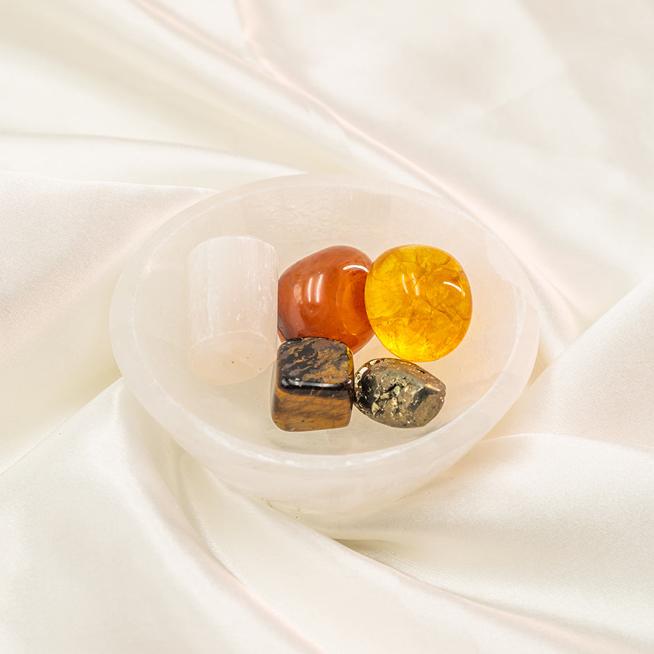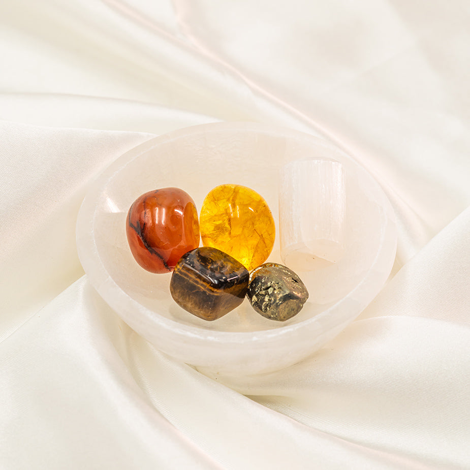 - Comes in a set of 5 natural crystal tumbles